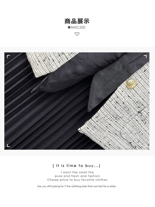 Double-Breasted Tweed Vest / Pleated A-Line Dress