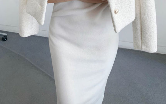 Set: Round-Neck Tweed Jacket + A-Line Skirt