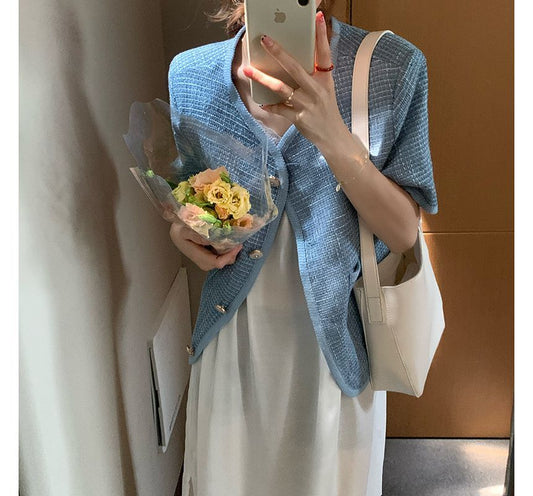 Short Sleeve Single Breasted Tweed Crop Blazer