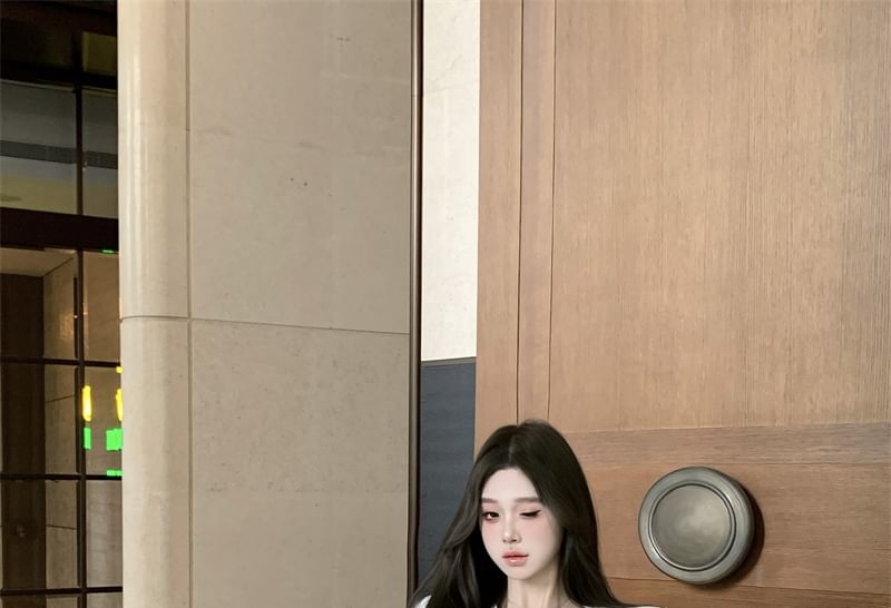 A-Line Cropped Open Plain Top High Mini / Front Lace Skirt Bustier Rise Jacket