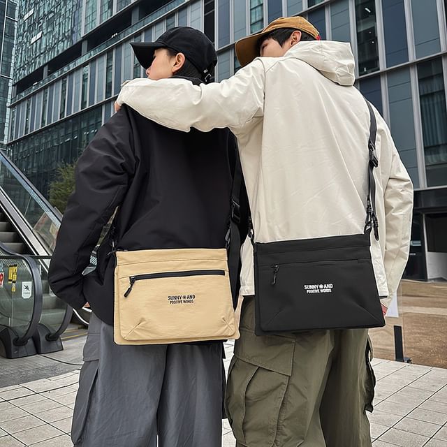 Lettering Print Nylon Crossbody Bag