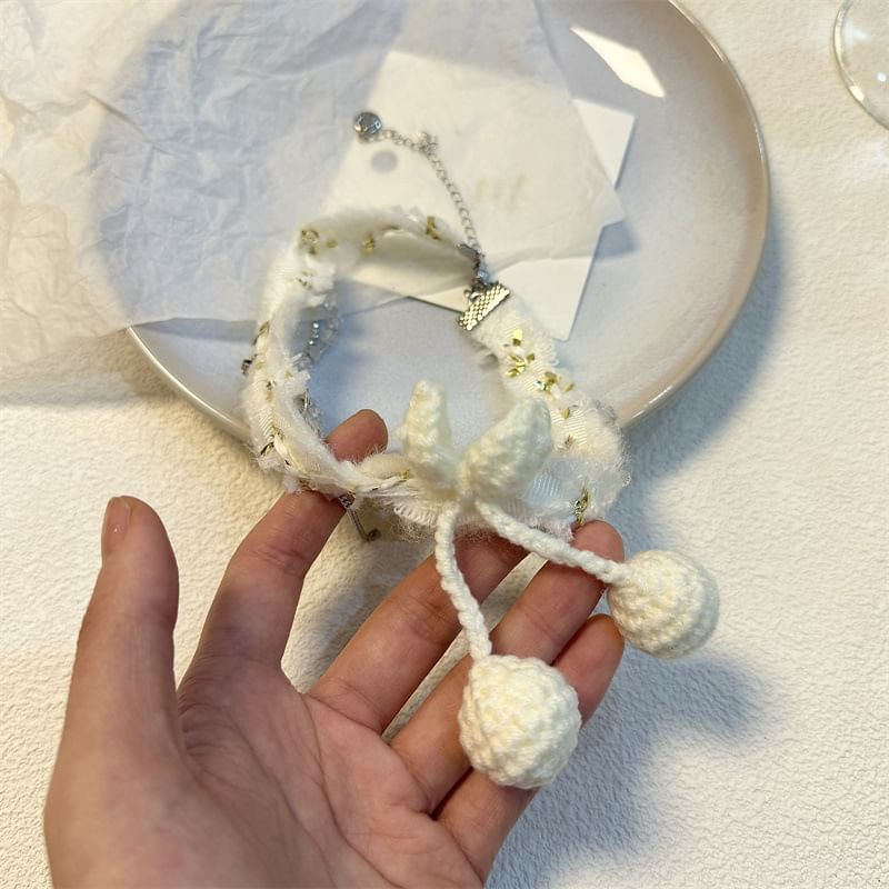 Cherry Bead Fringed Fabric Choker
