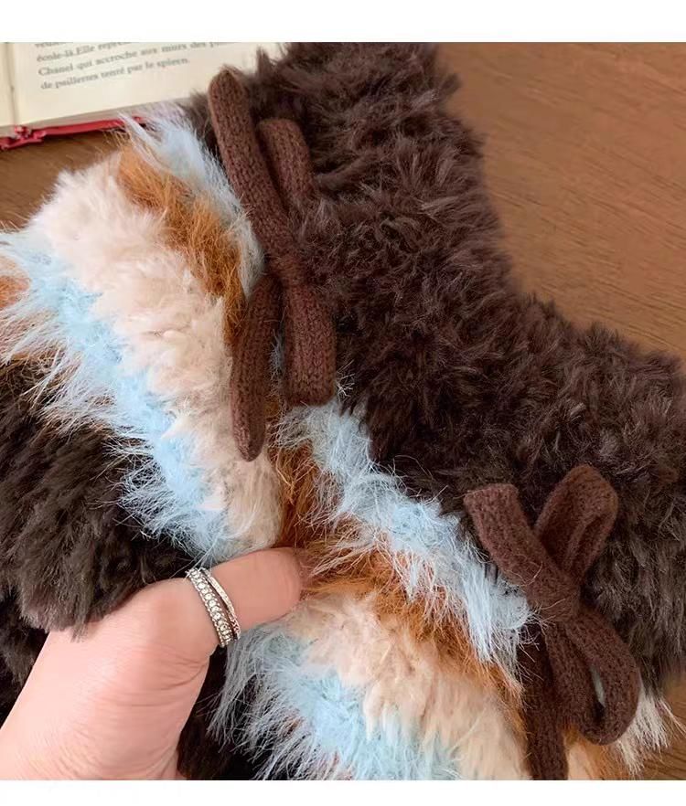 Cat Ear Bow Fluffy Knit Beanie