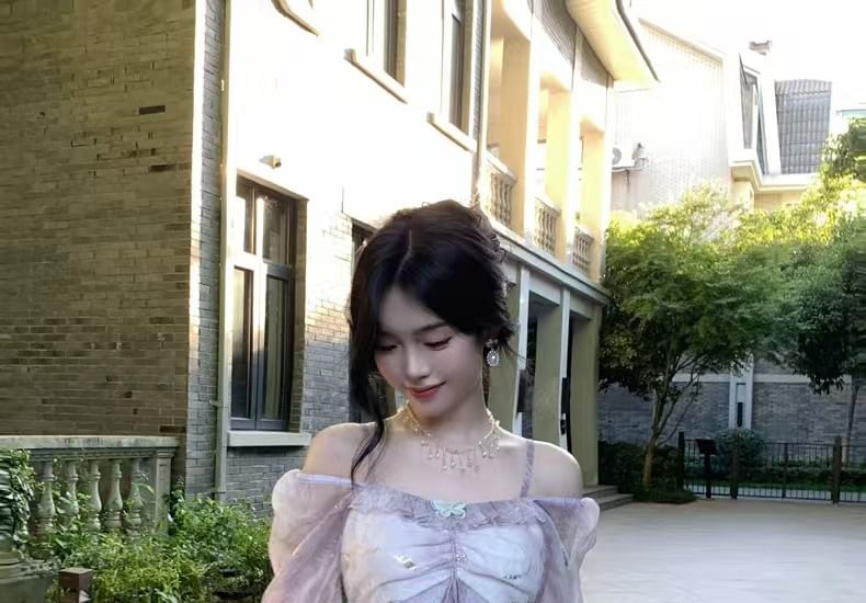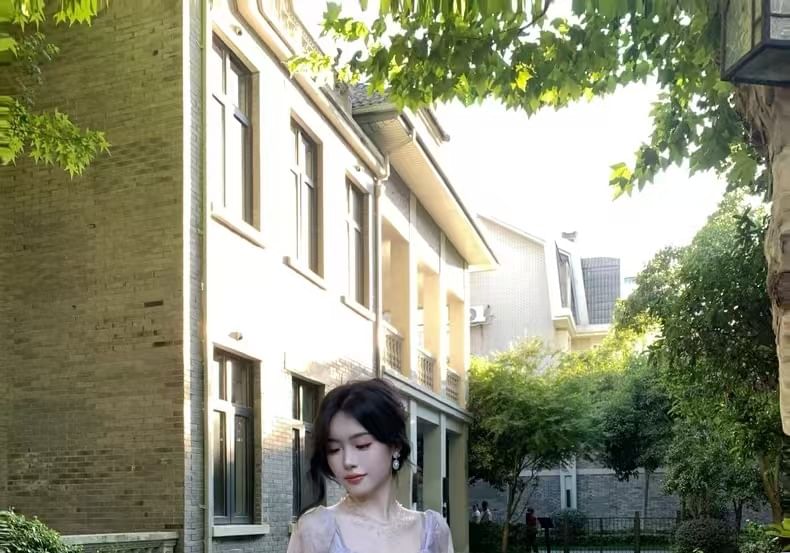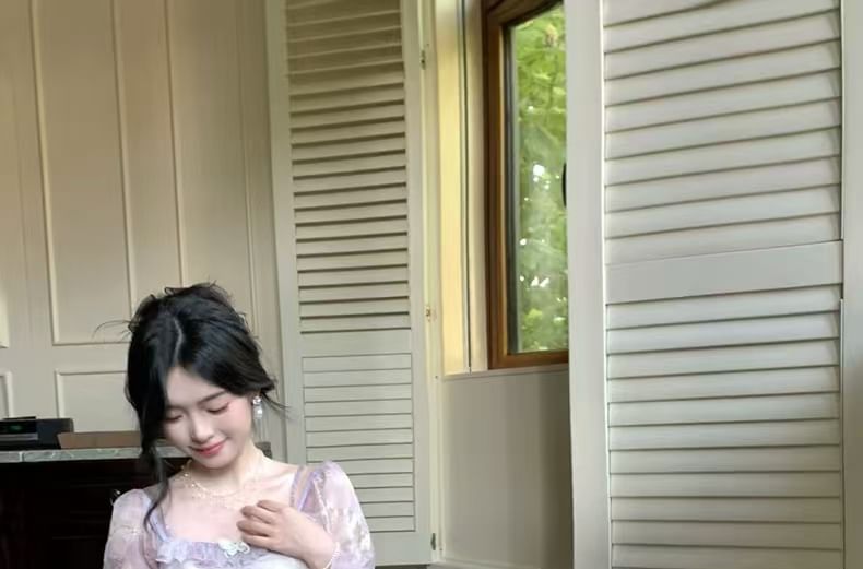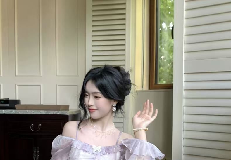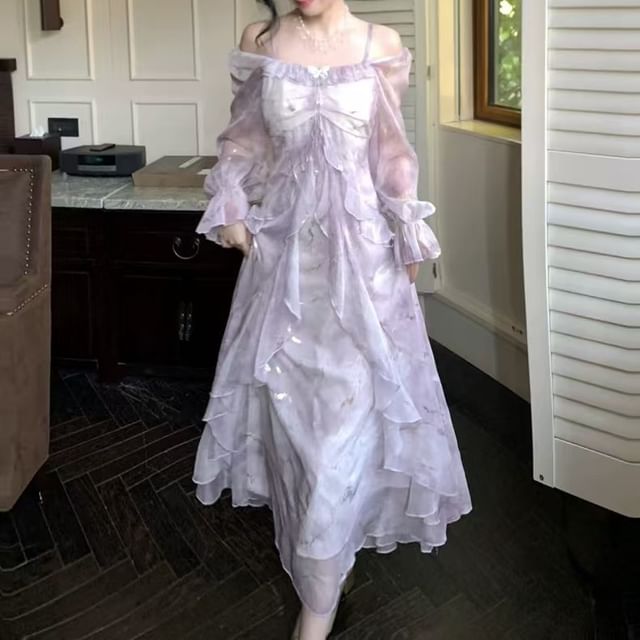 Cold Accent Tie Maxi Shoulder A-Line Ruffle Dress Trim Long-Sleeve Butterfly Dye