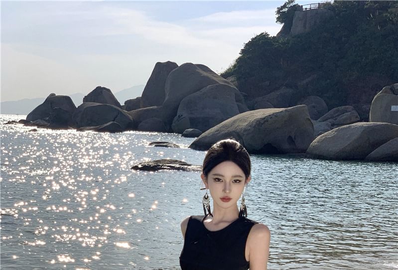 Crewneck A-Line Tone Sleeveless Maxi Dress Two