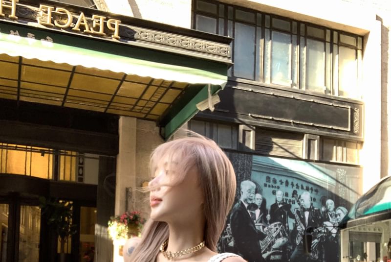 Drawstring Strapless Waist Side-Slit / High Pants Plain Flared Asymmetrical Top