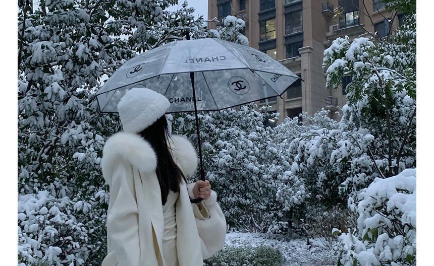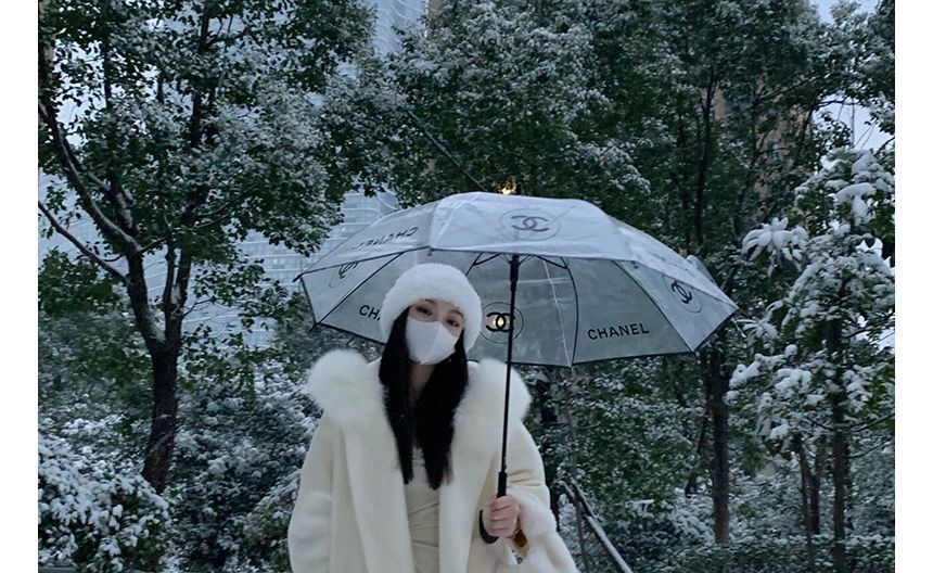 Faux Fur Trim Plain Hooded Open Front Woolen Coat