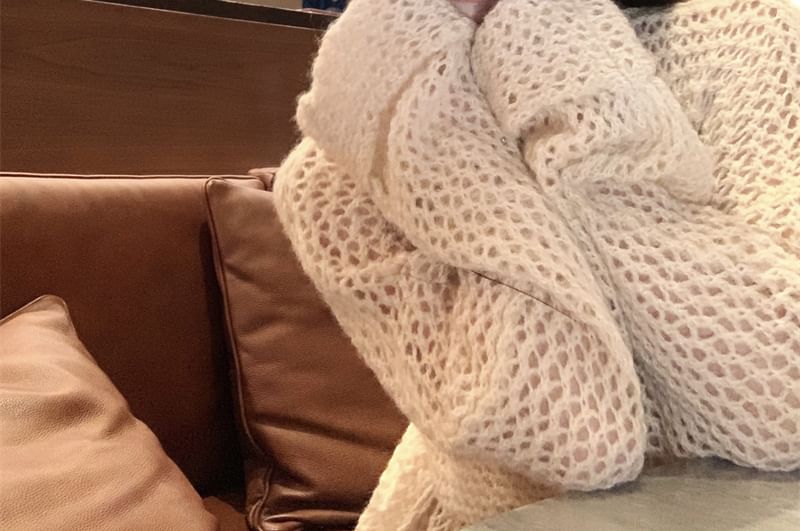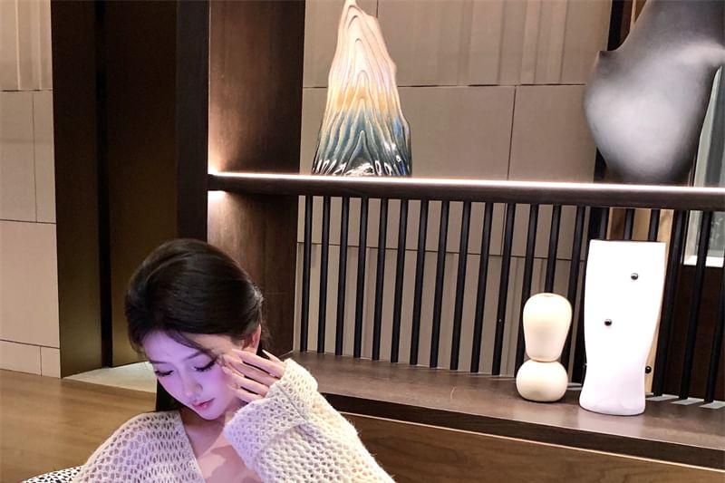 Spaghetti Strap V-Neck Flower Print Mini Bodycon Dress / V-Neck Plain Crochet Cardigan