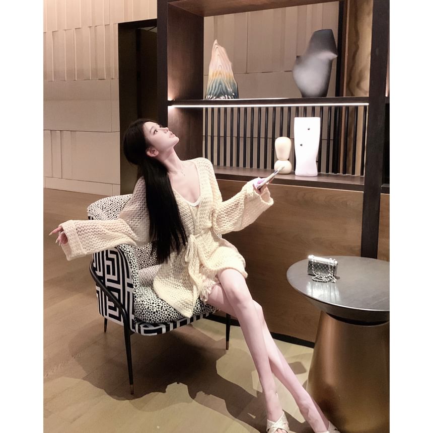 / Flower Strap V-Neck Crochet Bodycon Print Plain Cardigan Mini Dress Spaghetti