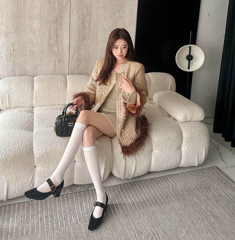 Chunky Heel Plain Faux Leather Panel Buckled Mary Jane Pumps