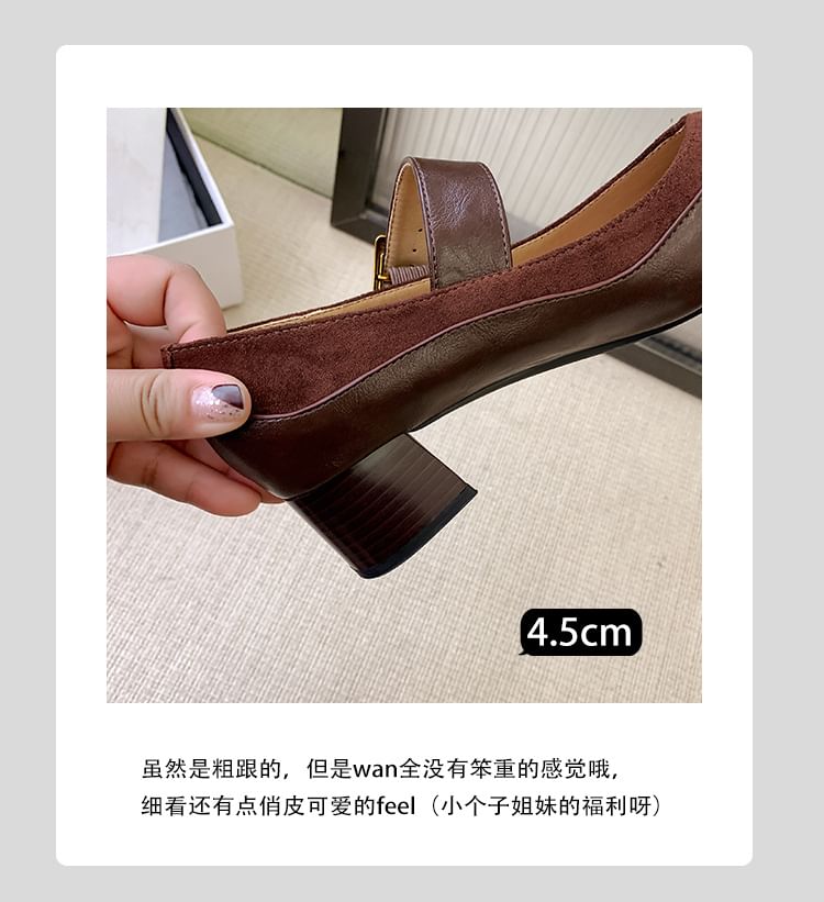 Heel Plain Jane Panel Leather Mary Buckled Chunky Pumps Faux