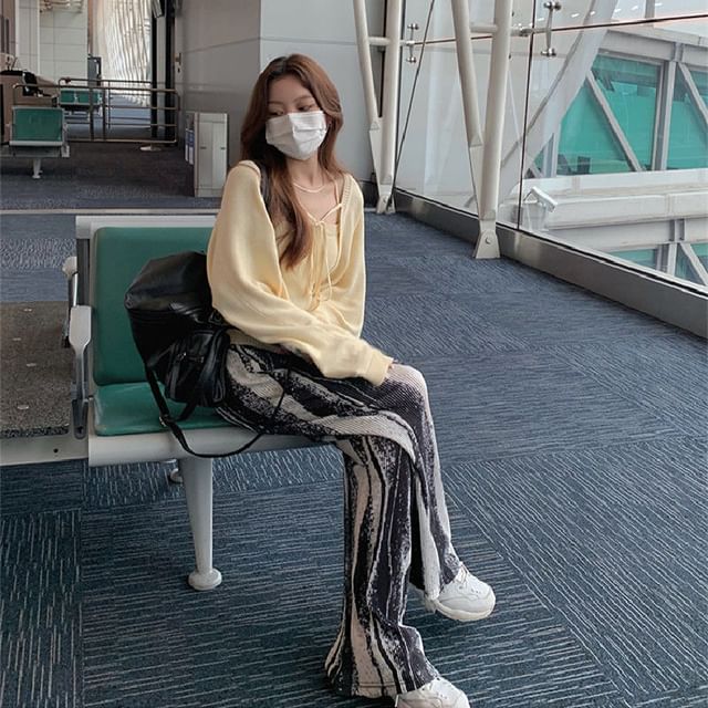 High Pants Wide Leg Pleated Patterned Rise Print