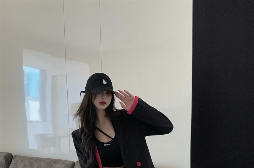 High Waist Plain Mini Pencil Skirt / Mock Two-Piece Notch Lapel Two Tone Blazer (Various Designs)