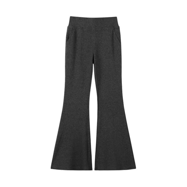 Lettering Embroidered Zip Hoodie / High Waist Plain Flared Pants / Long Sleeve V-Neck Embroidered Tee
