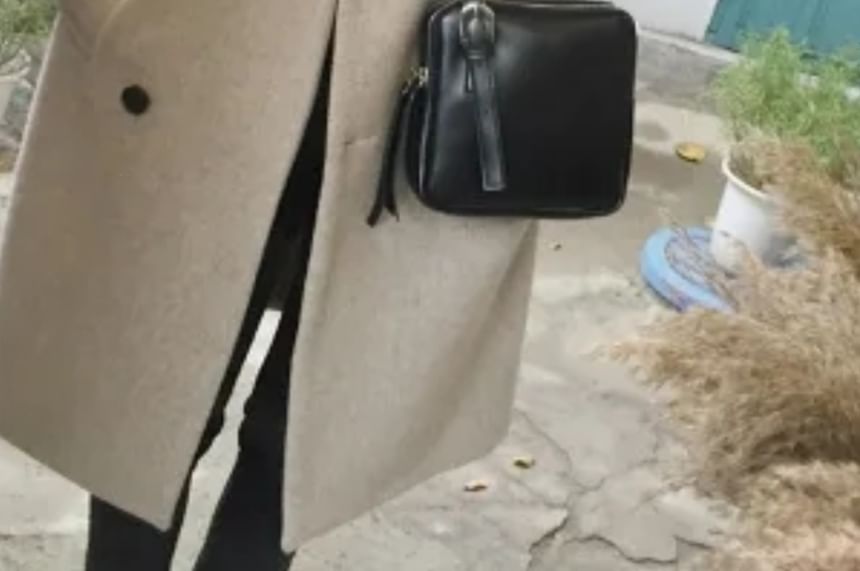 Long-Sleeve Double Breasted Woolen Trench Coat