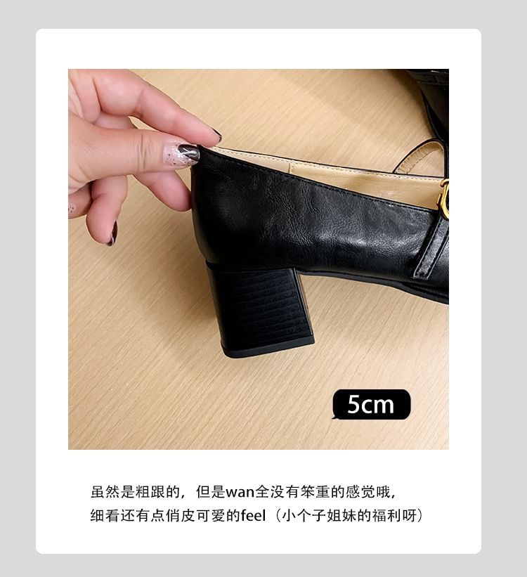 Mary Toe Leather Square Heel Faux Plain Jane Pumps Chunky