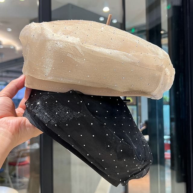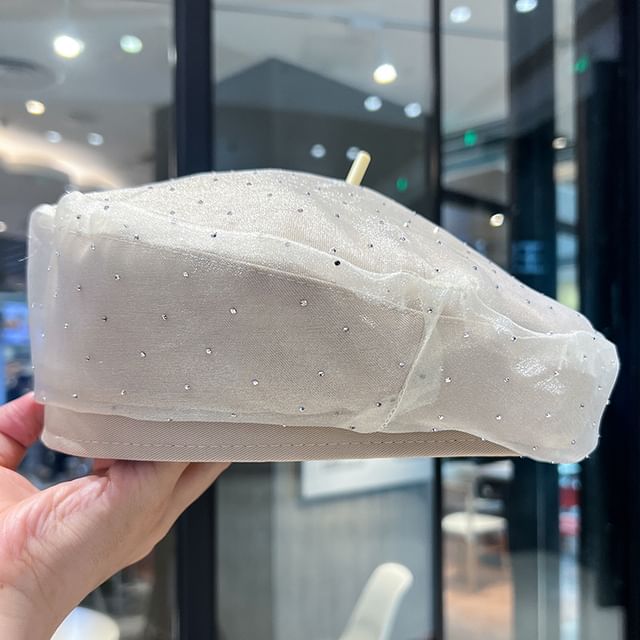 Mesh Rhinestone Beret
