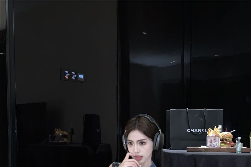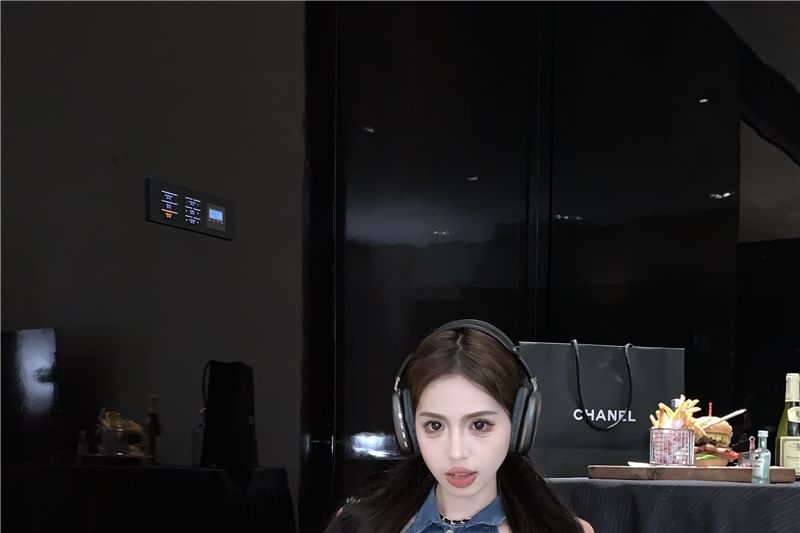 Mini Washed Vest Skirt / Button Pencil Crop Collared Denim Waist High