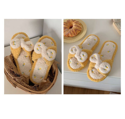 Pineapple Embroidered Fluffy Bow Slippers