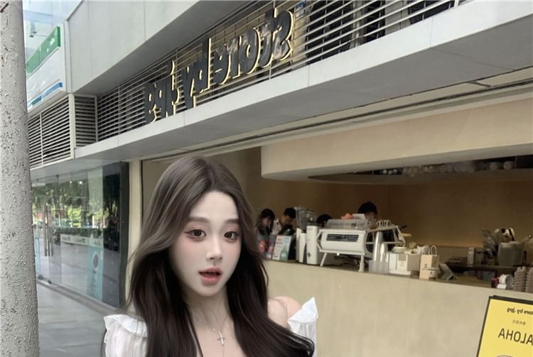 Plain Blouse V-Neck Long Sleeve Bow Ruffle