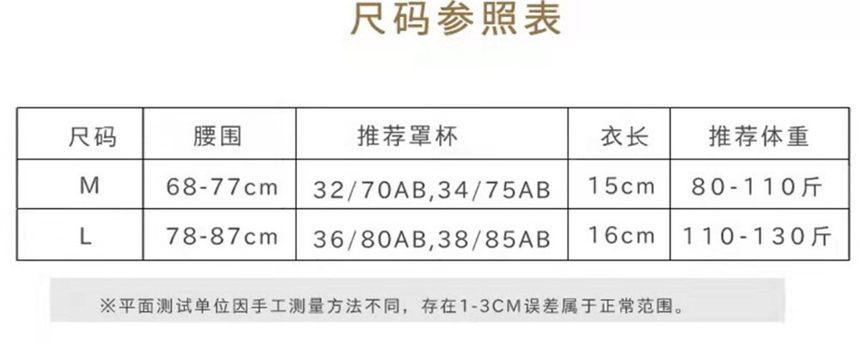 | Waist | Total Length | Cup |