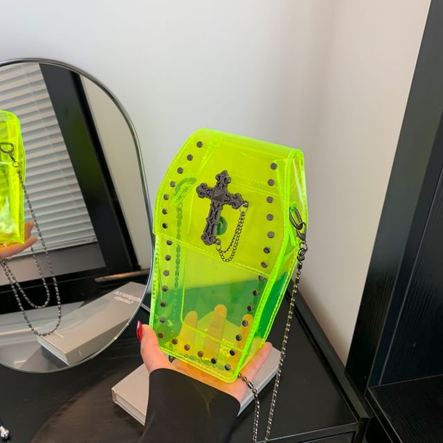 Crisscross Chained Studded PVC Crossbody Bag