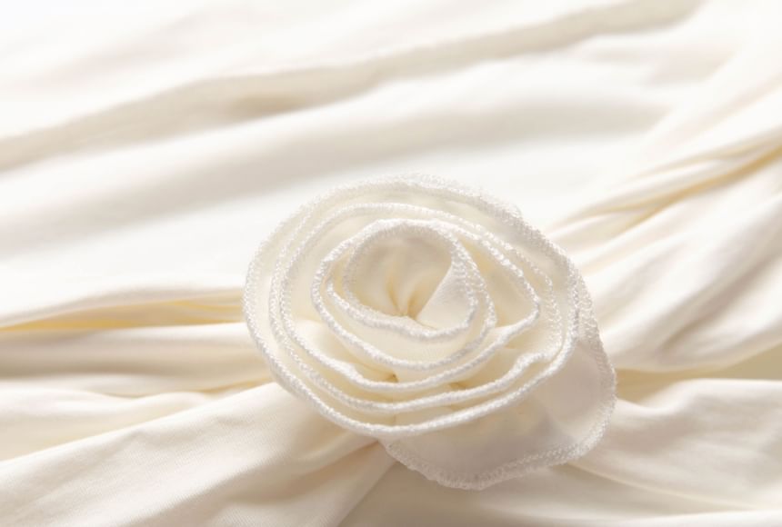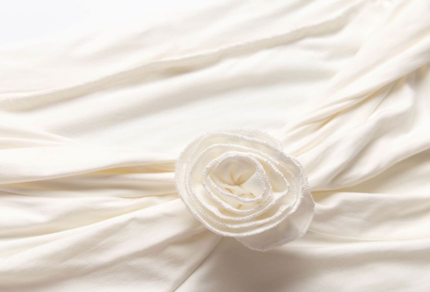 Short-Sleeve Off-Shoulder Plain Floral Accent Ruched Slim Fit Crop Top