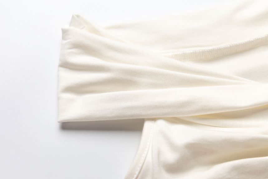 Ruched Off-Shoulder Accent Plain Short-Sleeve Slim Top Crop Floral Fit