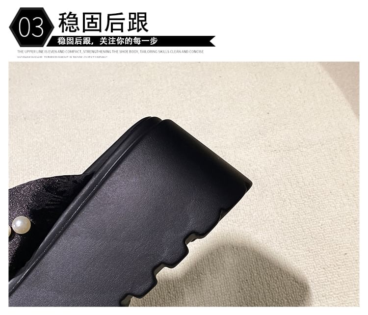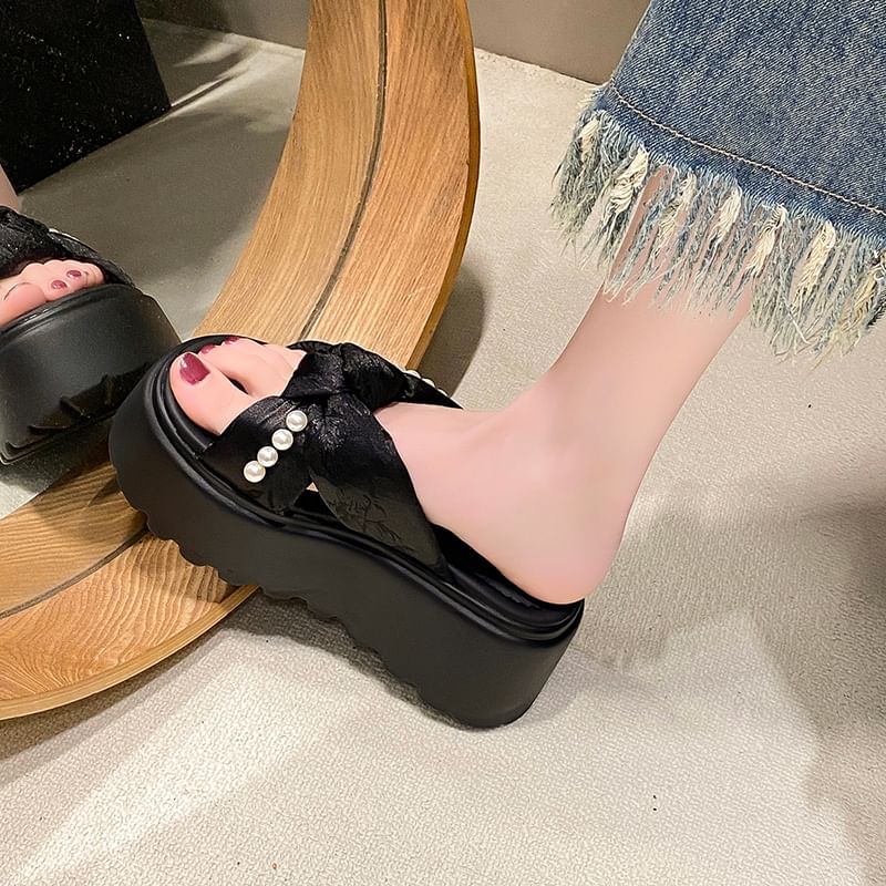 Patterned Knot Faux Pearl Platform Slide Sandals