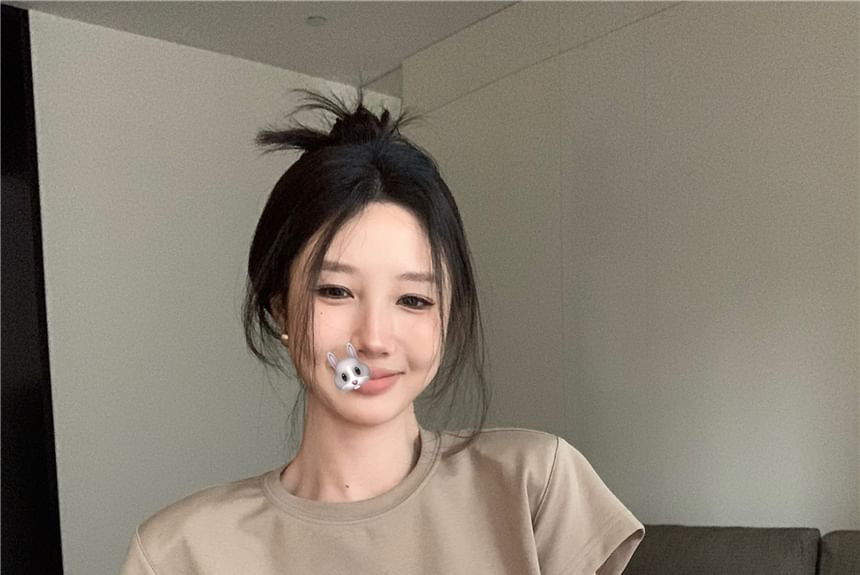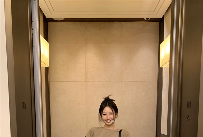 Short-Sleeve Crew Neck Plain Lettering Embossed Mock Two Piece Mini A-Line Dress