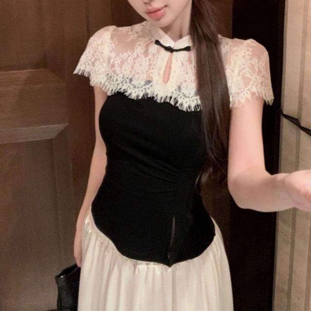 Short-Sleeve Maxi Top Asymmetrical Skirt Tone Two A-Line High / Waist