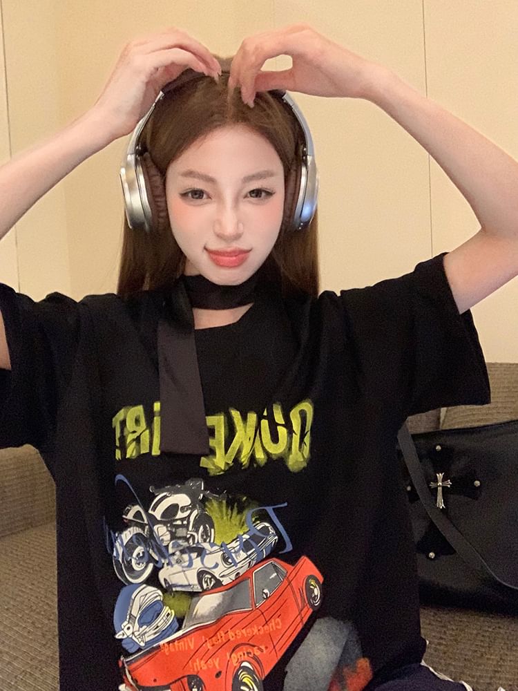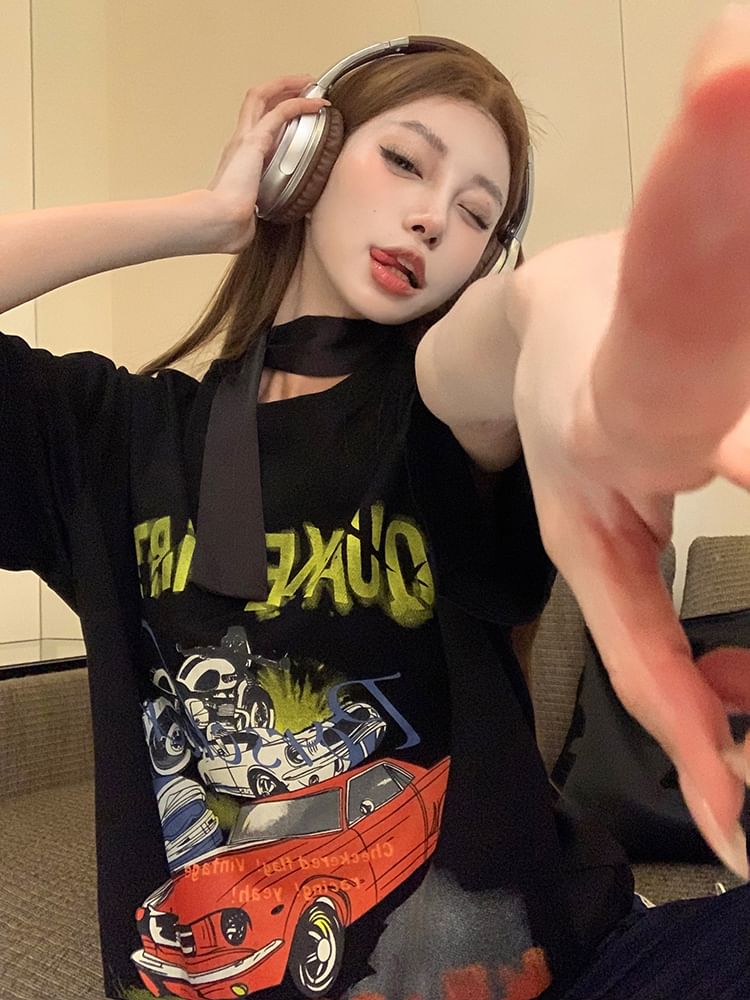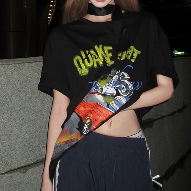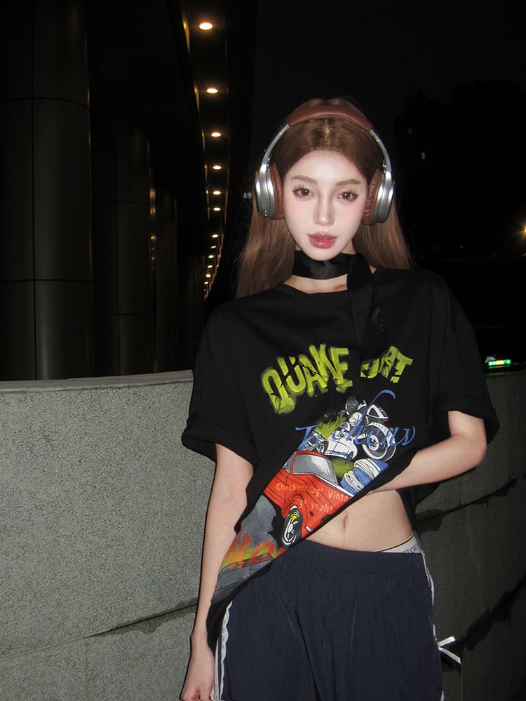 Short-Sleeve Round Neck Graphic Print Tee / Spaghetti Strap Mini Bodycon Dress