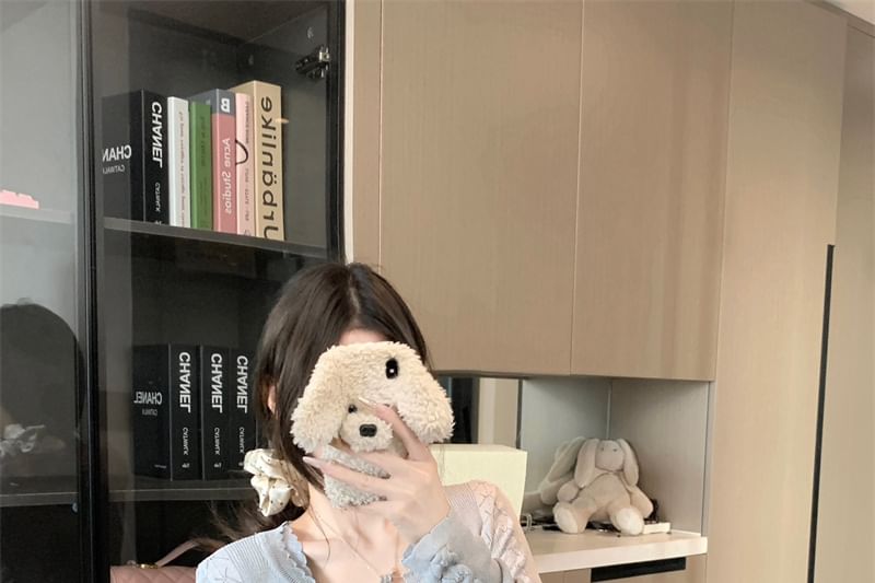 Sleeveless Plain Crop Cable + Neck Cardigan Scoop Top Knit Set: