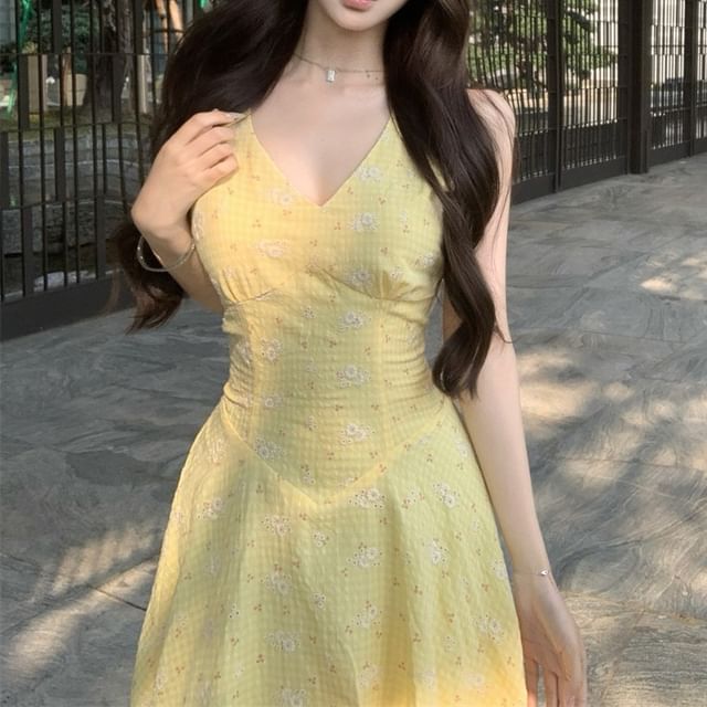 Sleeveless V-Neck Midi Floral Sundress