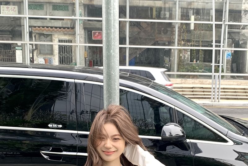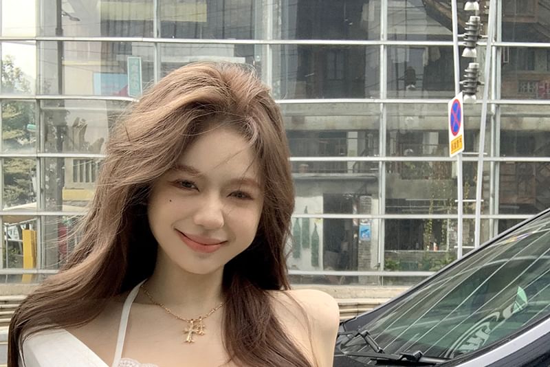 Slim Set: Halter Plain + Crop Camisole Back Fit Open Top T-Shirt Long-Sleeve V-Neck