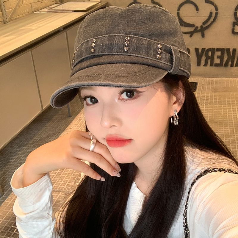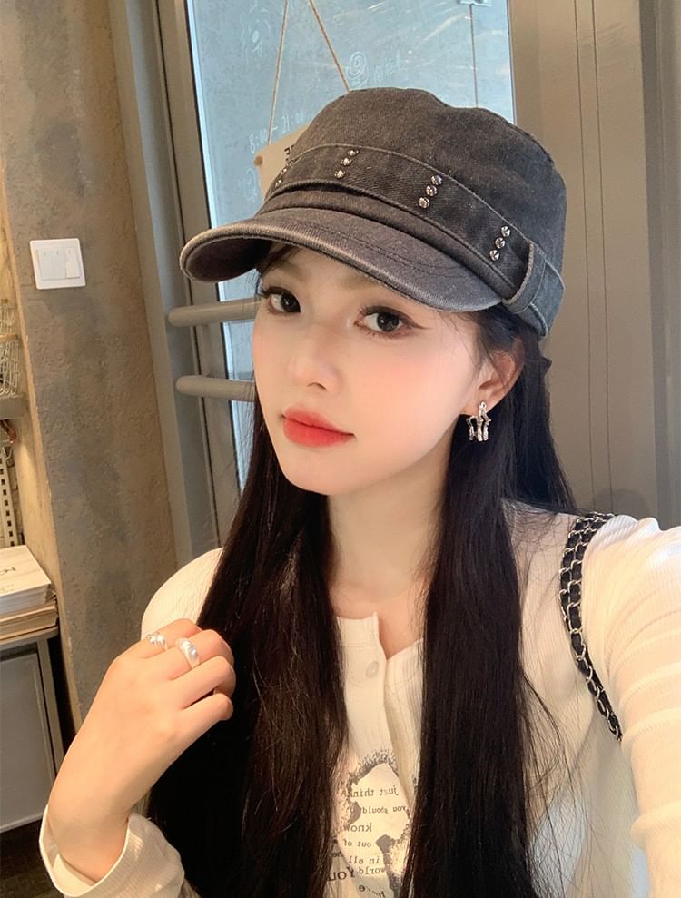 Studded Denim Military Cap