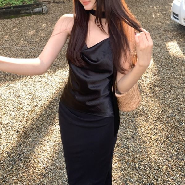 Top Strap Spaghetti Neck Cowl Plain Camisole