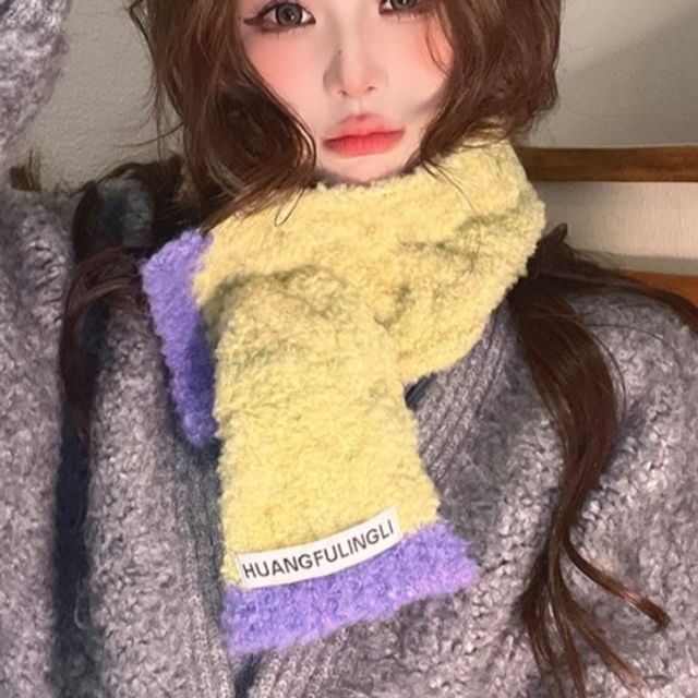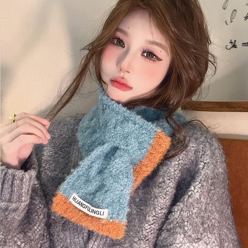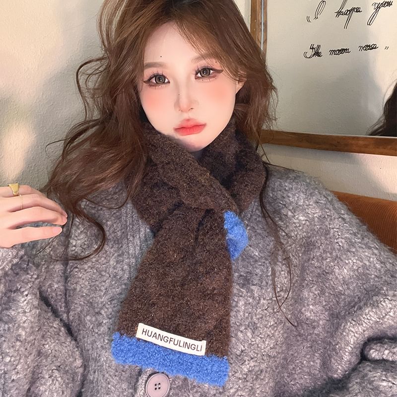Label Applique Contrast Trim Scarf