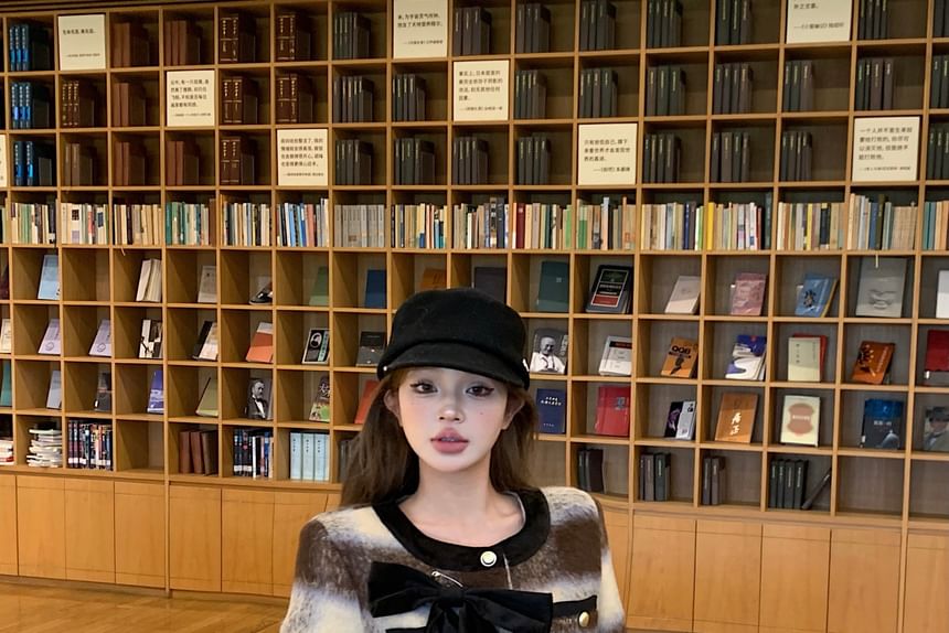 Trim / Bow Crop Contrast Accent Crew Skirt Jacket Rise Button-Up High Plaid Pencil Mini Neck