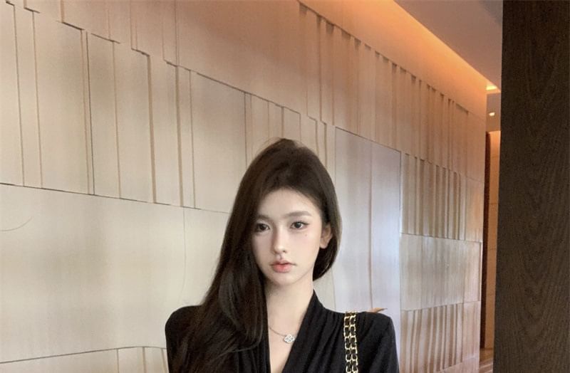 Waist Plain Shawl Tie Collar Cardigan