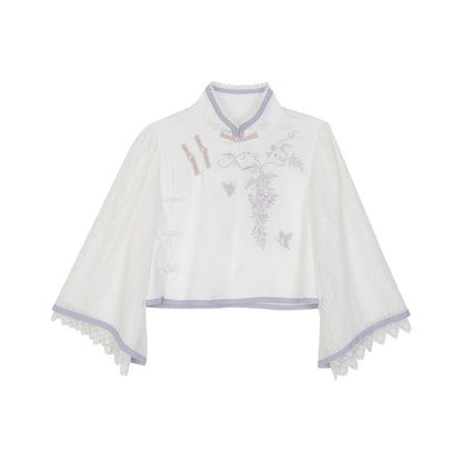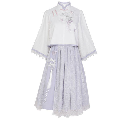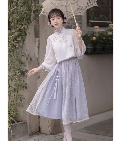 Lolita 3/4-Sleeve Qipao Top And High Rise Overlay Midi A-Line Skirt Set