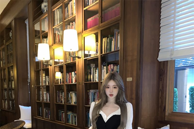 A-Line / Cami High Plain Trim Blouse Top Puff-Sleeve Pleated Waist Plaid Button-Up Striped Mini Skirt Lace