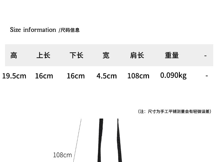 | Height | Upper Length | Bottom Length | Width | Strap Length |