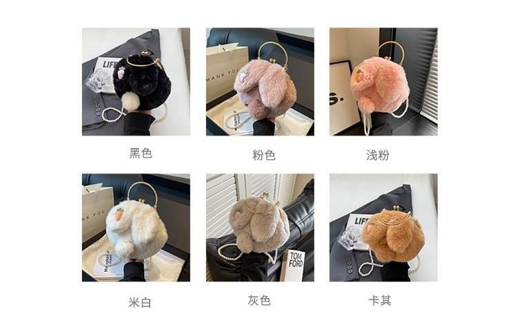 Beaded Strap Rabbit Fluffy Crossbody Bag