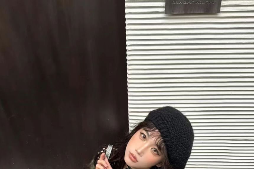 Boatneck Top Knit Perforated Long-Sleeve
