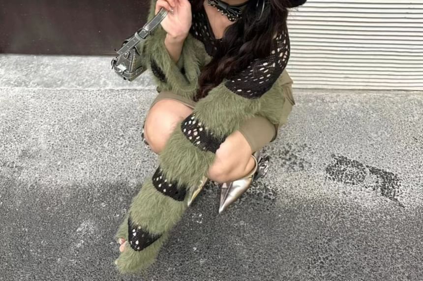 Long-Sleeve Boatneck Perforated Knit Top