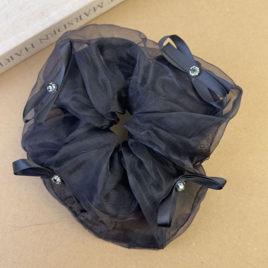 Bow Accent Rhinestone Mesh Scrunchie