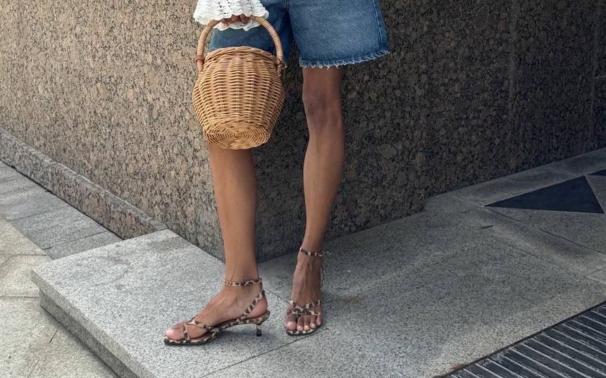 Flared-Cuff V-Neck Button-Up Perforated Plain Crop Cardigan
