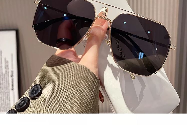 Double Bridge Metal Frame Polished Sunglasses / Case / Pouch / Cleaning Cloth / Set