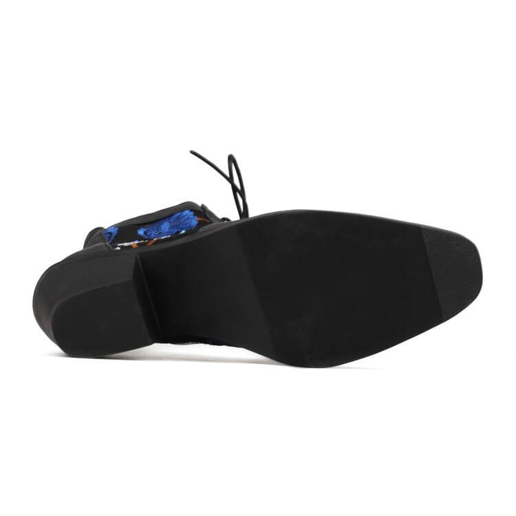 Chunky Heel Floral Embroidered Mesh Panel Lace